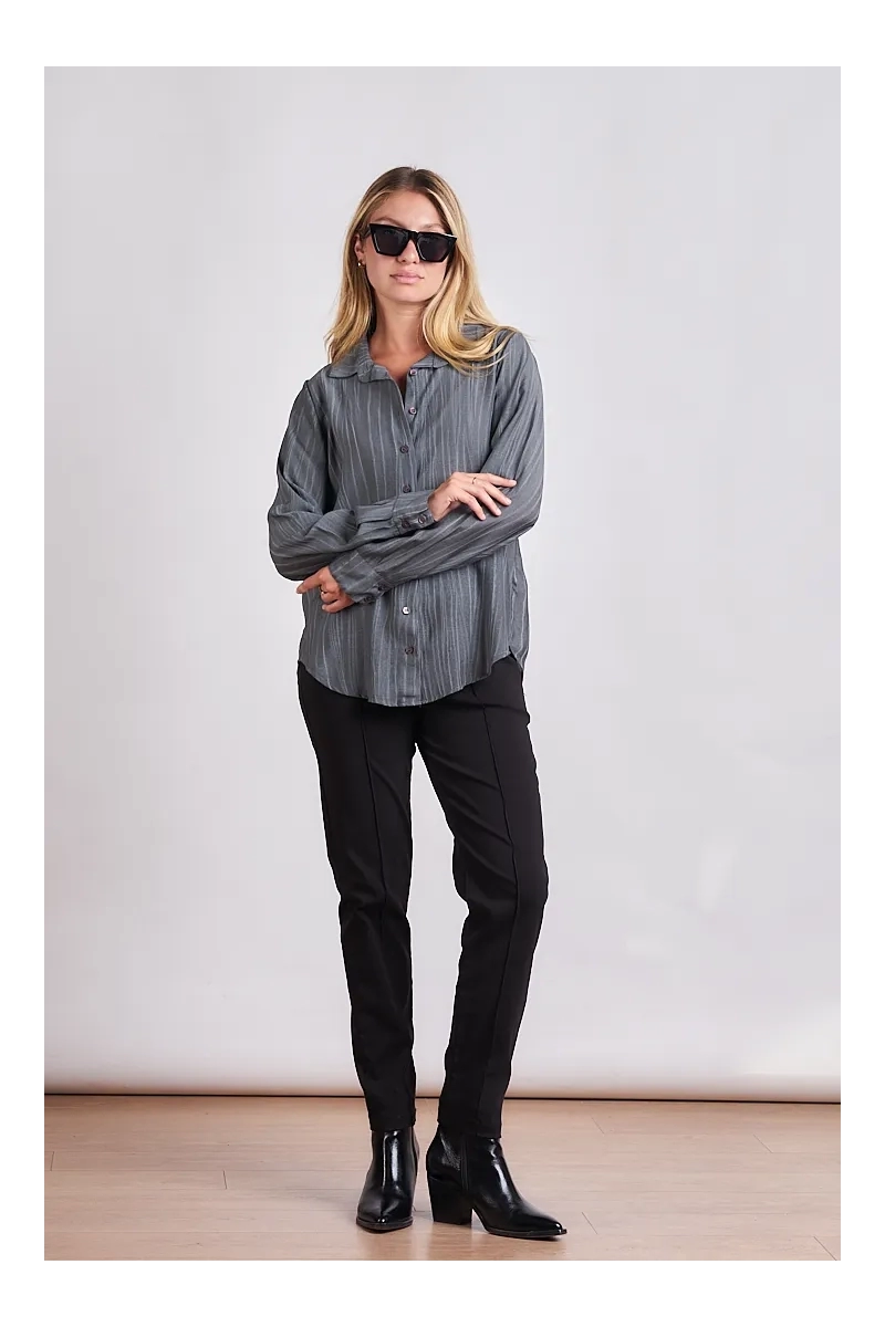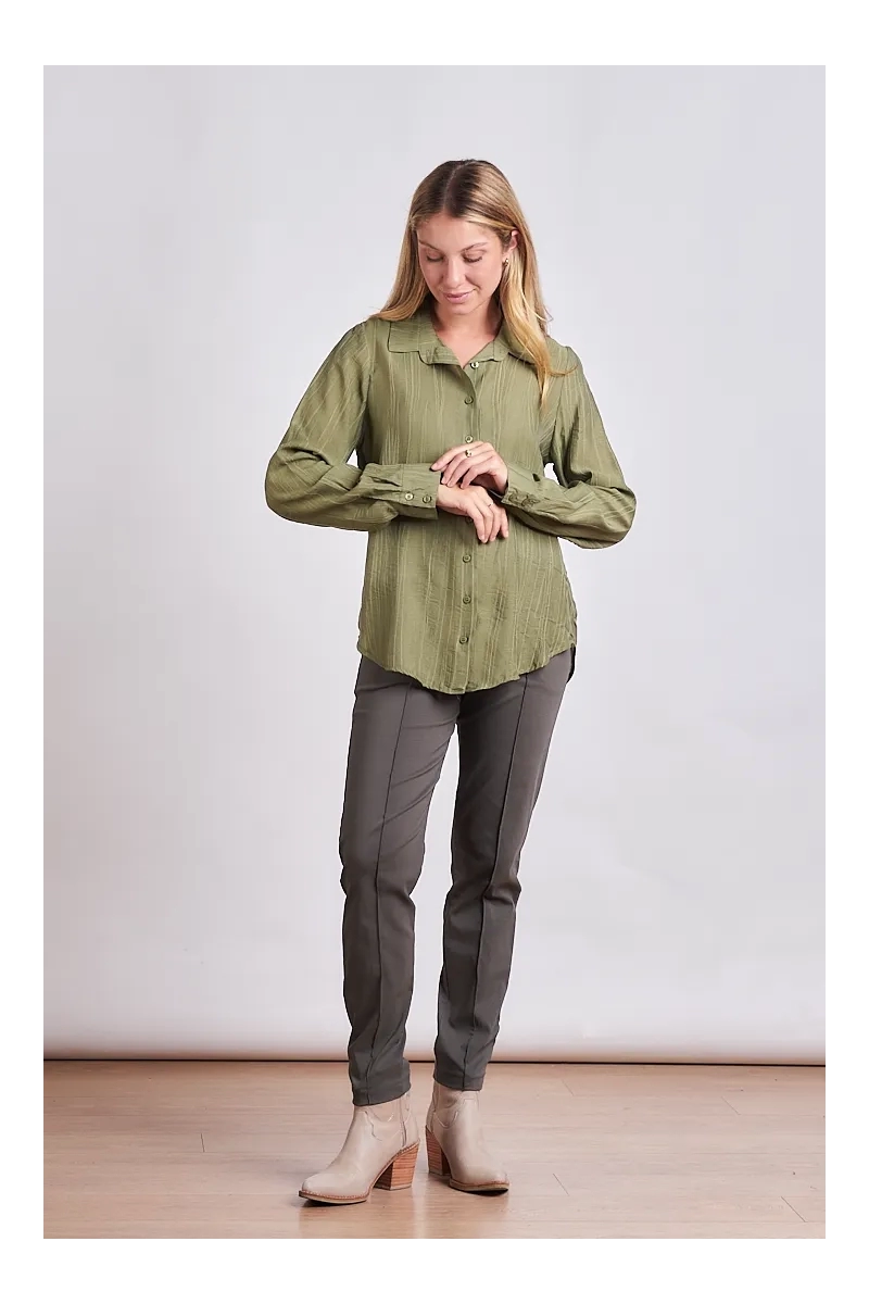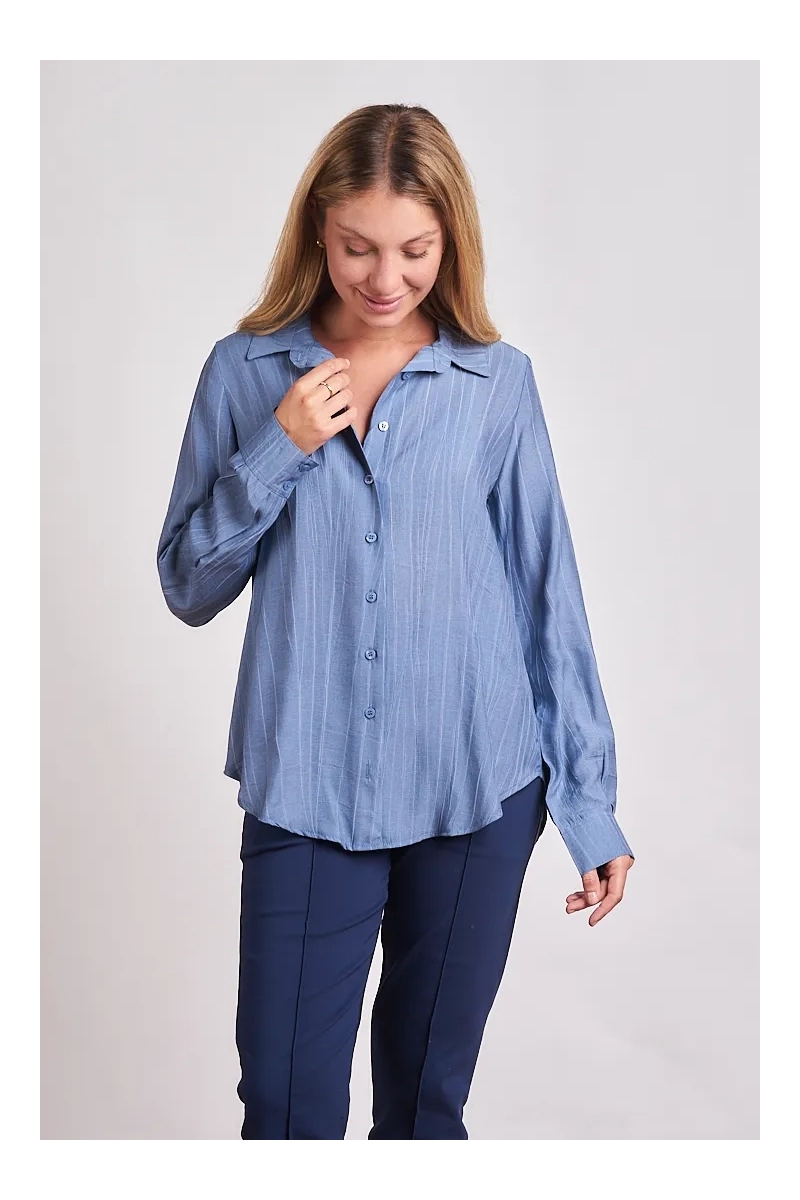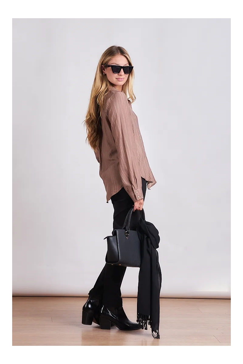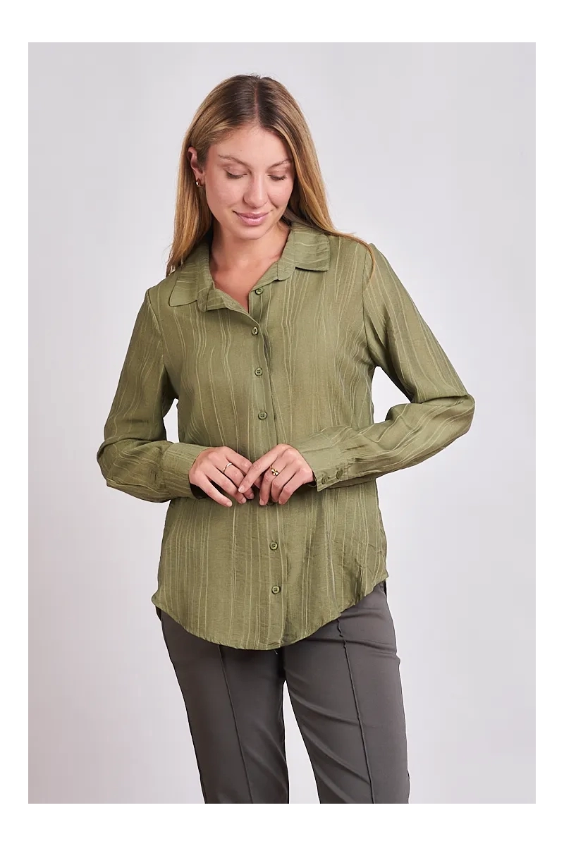 La prenda que define el concepto de elegancia sin esfuerzo. Esta camisa está confeccionada en Camisero Cisne un textil liviano con una sutil trama lineal que aporta movimiento y un brillo mate muy sofisticado. Su diseño clásico de corte recto y caída fluida la convierte en la opción ideal tanto para un look profesional como para una salida de noche adaptándose a cualquier estilo con solo cambiar los accesorios. La trama propia de la tela le da una terminación premium que la diferencia de las camisas de microfibra o poplín lisas.