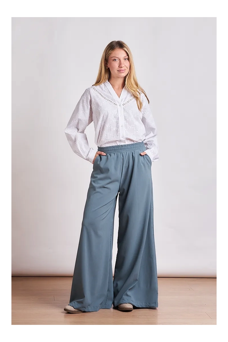 Elegancia en movimiento y confort absoluto. Este palazzo está confeccionado en Crepe con Spandex de alta densidad un tejido que se destaca por su caída impecable su textura sastrera y su elasticidad estratégica. Es la prenda perfecta para un look sofisticado que requiere libertad de movimiento manteniendo una silueta pulida de la mañana a la noche. Este modelo cuenta con una cintura ancha y reforzada con elástico interno diseñada para modelar la zona abdominal y ofrecer un ajuste firme pero sumamente cómodo. Al no tener cierres ni botones frontales evita bultos innecesarios y garantiza un calce liso bajo cualquier prenda superior.
