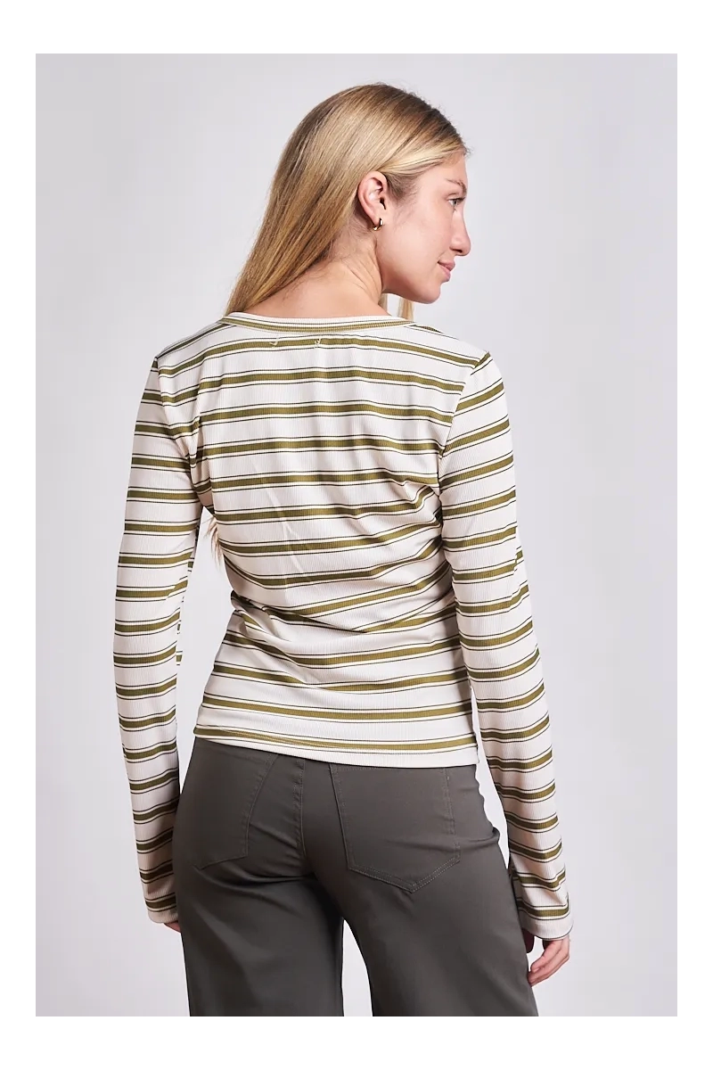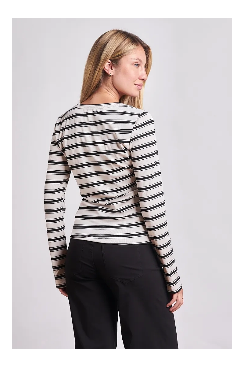 El clásico que se reinventa cada temporada. Esta remera está confeccionada en Morley HC un tejido de punto con mayor densidad y un acabado premium que asegura una caída impecable y cero transparencias. Con una base en color crudo y rayas finas tejidas esta prenda aporta un aire fresco y sofisticado ideal para looks de media estación o como abrigo liviano. Esta es la prenda náutica reversionada para el invierno. El Morley HC (High Comfort) es un textil con más cuerpo y estructura que el morley convencional lo que lo hace ideal para remeras de manga larga que buscan vestir un poco más.