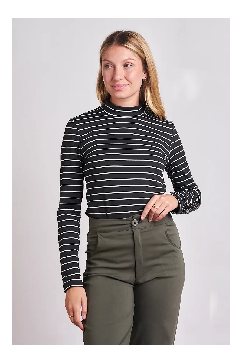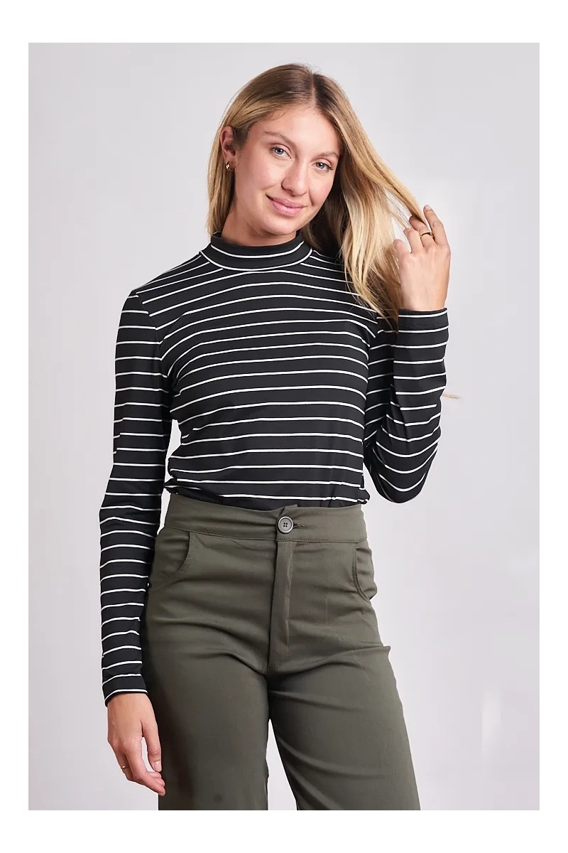Elegancia en cada línea. Esta prenda está confeccionada en Jersey Málaga de alta calidad un textil que se distingue por su mano sedosa y una caída fluida que se desliza sobre el cuerpo. Su diseño de rayas horizontales en tonos intensos la convierte en una pieza con carácter ideal para quienes buscan salir de los básicos tradicionales y sumar diseño a su stock. A diferencia de los puntos convencionales el Málaga tiene un brillo sutil y una suavidad excepcional que el cliente percibe como un producto de lujo.
