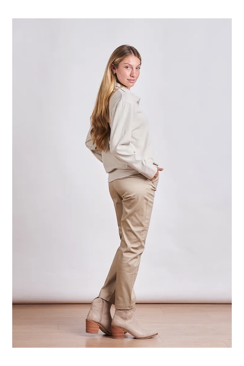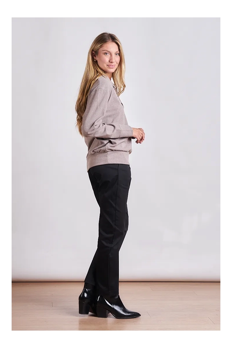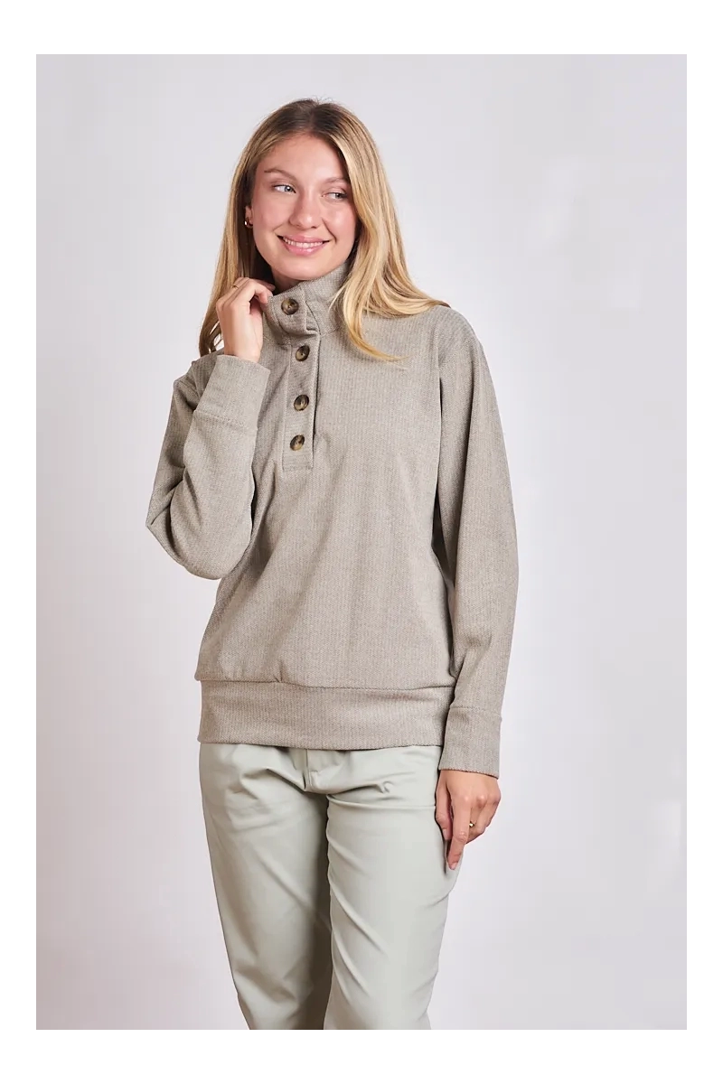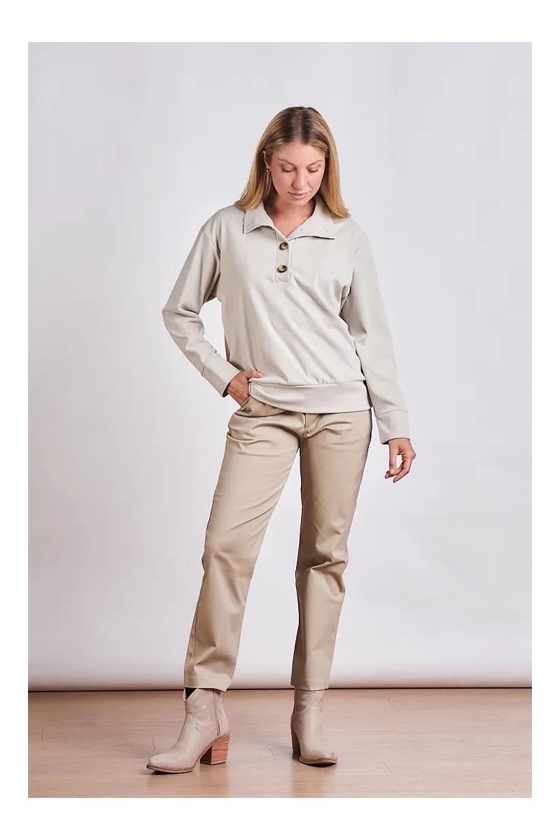 El equilibrio perfecto entre confort y estilo urbano. Este buzo está confeccionado en Darlon Maje un tejido de punto premium que se destaca por su suavidad extrema y su calidez liviana. Con una caída relajada y un acabado que remite a lo artesanal es la prenda ideal para esos días donde buscás un look impecable sin resignar comodidad. Este Buzo en Darlon Maje es la pieza que combina la comodidad del homewear con la estructura de una prenda de salida.