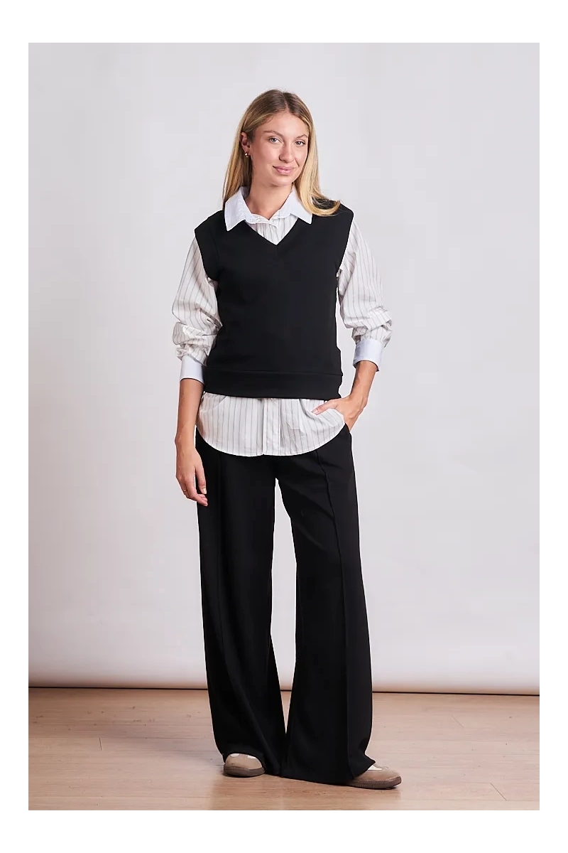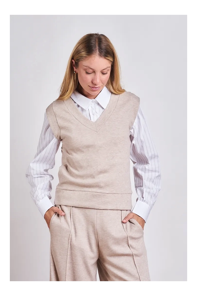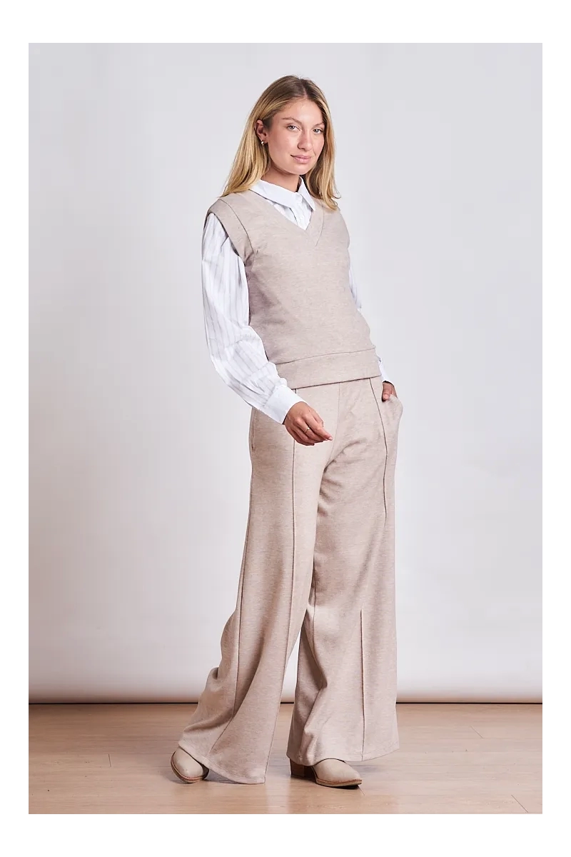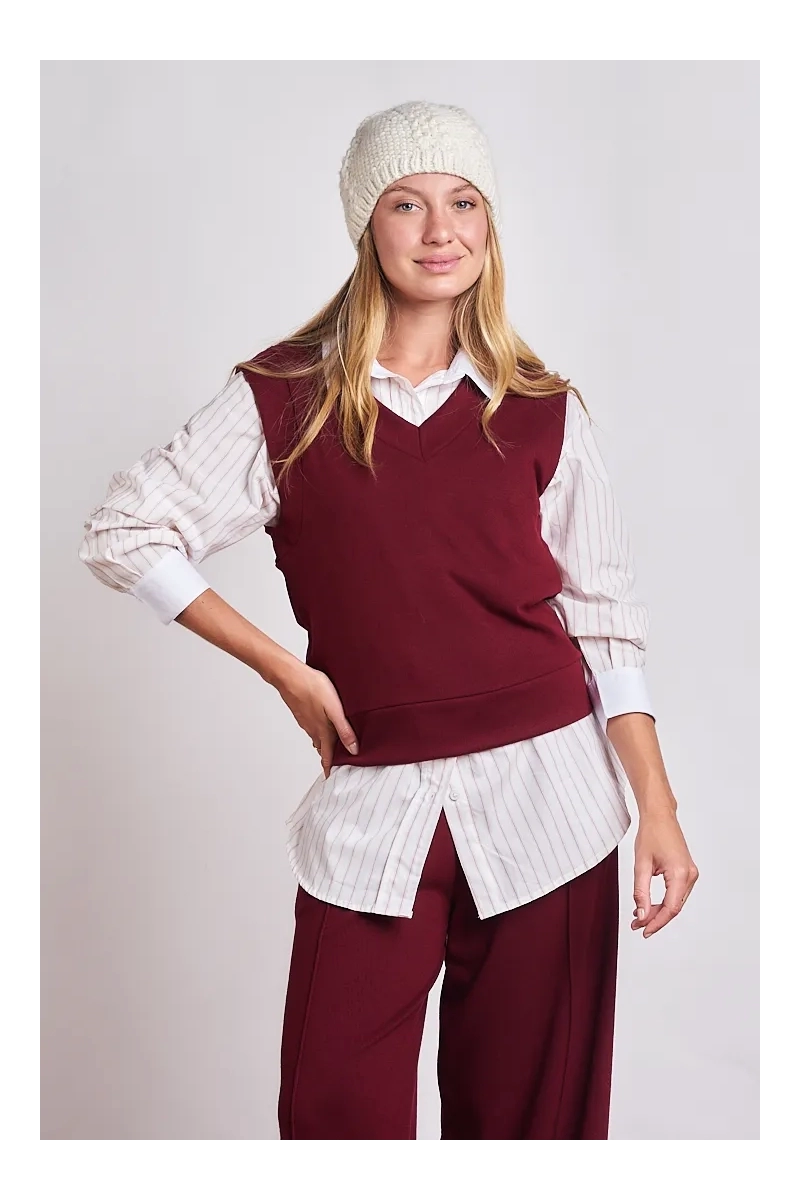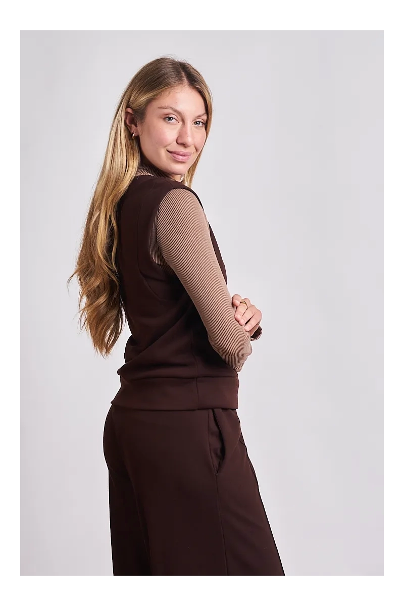 La pieza clave para el layering de temporada. Este chaleco está confeccionado en Tejido Bremer de alta calidad reconocido por su suavidad excepcional y su capacidad para brindar abrigo sin sumar volumen excesivo. Su diseño minimalista y su textura lisa lo convierten en un básico sofisticado que se adapta tanto a un look de oficina sobre una camisa como a un outfit relajado sobre una remera de morley. Gracias a la elasticidad natural del tejido los 4 talles (S al XL) aseguran un ajuste perfecto que acompaña la silueta con elegancia.