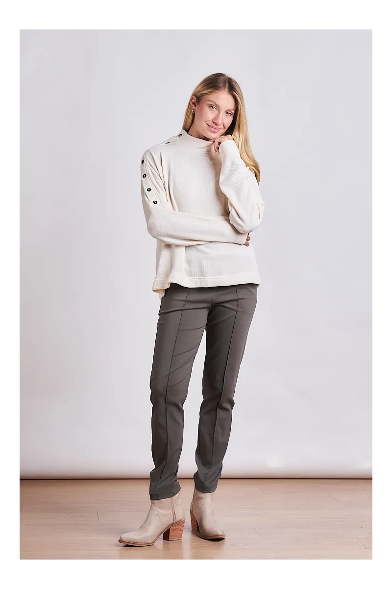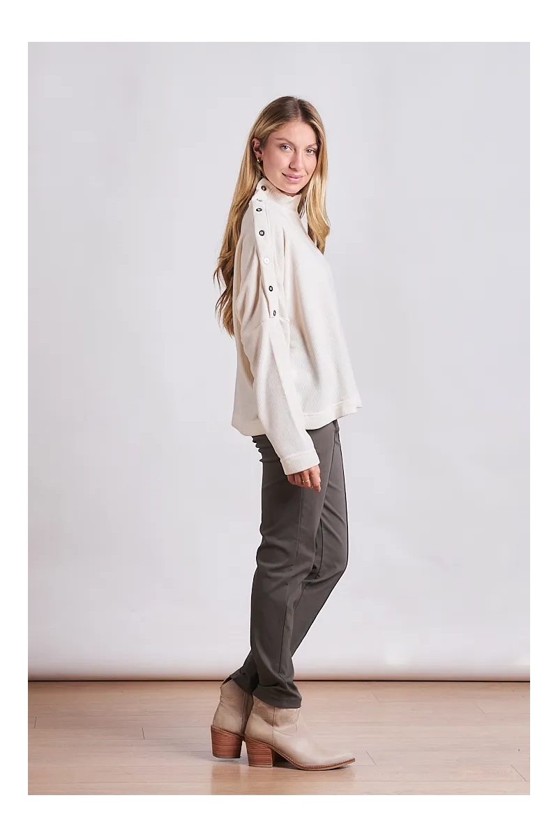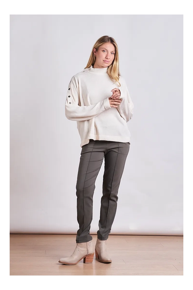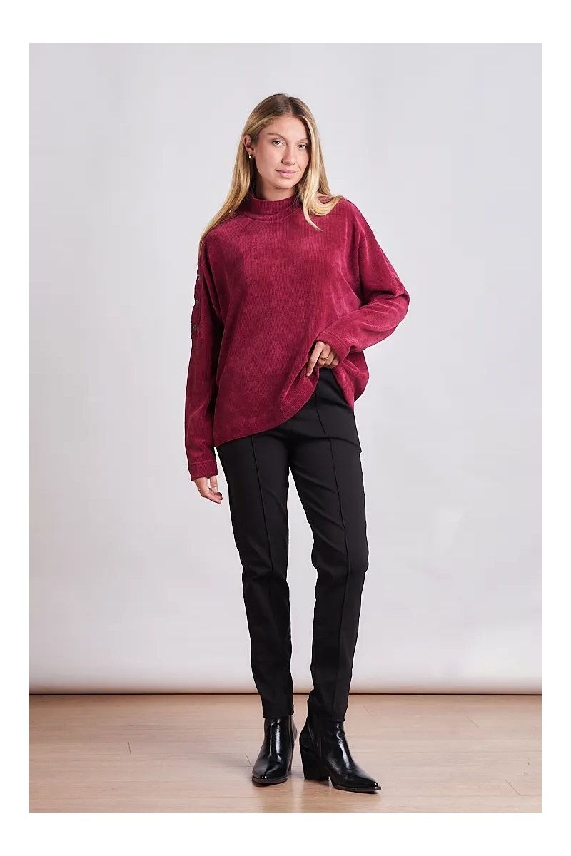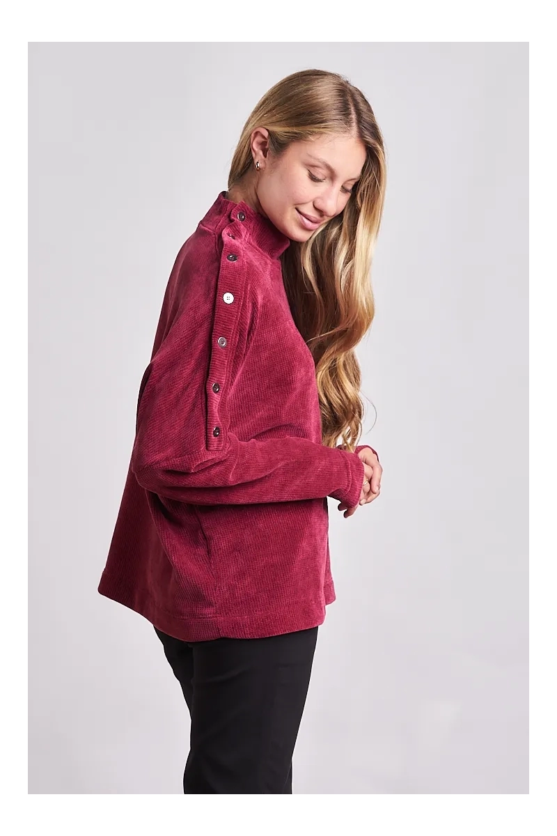 La pieza estrella de la temporada. Este sweater está confeccionado en Chenille de calidad superior un tejido que destaca por su brillo satinado y una suavidad que imita al terciopelo. Su diseño se distingue por una fila de botones de estilo náutico en uno de sus hombros un detalle de sastrería que aporta elegancia y un acabado diferenciador ideal para quienes buscan una prenda con personalidad. Es el punto focal de la prenda. Este accesorio metálico o de carey (según el tono) eleva el valor percibido permitiendo que el revendedor lo destaque como una pieza de diseño.